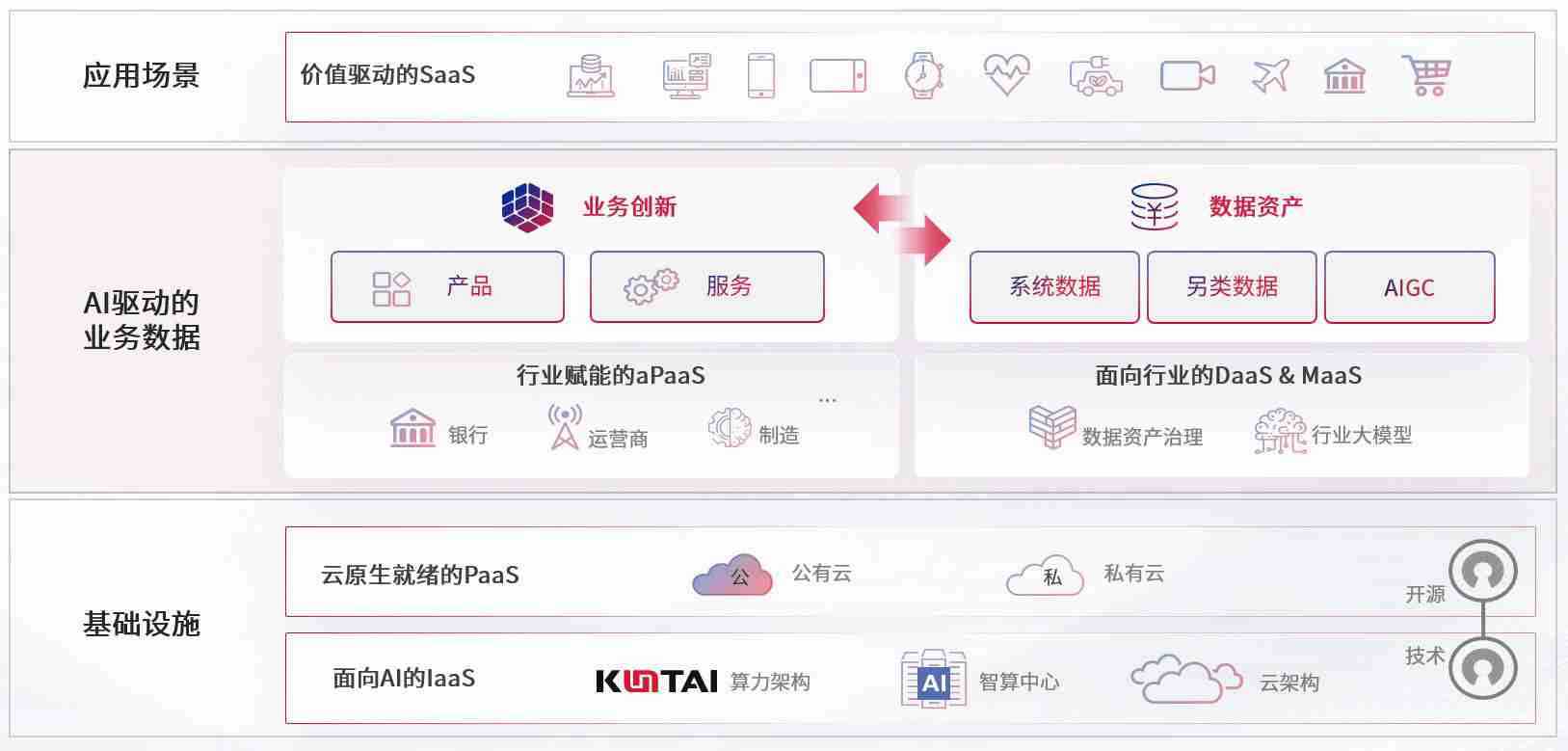 数字时代,,,,围绕企业数字化转型的关键要素,,,,PA真人游戏数码开创性的提出数云融合战略和技术体系框架,,,着力在云原生、、数字原生、、、、AI原生和信创产业上架构产品和服务能力,,,为处在不同数字化转型阶段的快消零售、、汽车、、、金融、、医疗、、、政企、、、、教育、、、、运营商等行业客户提供泛在的敏捷IT能力和融合的数据驱动能力,,,,构建跨界融合创新的数字业务场景和新业务模式,,,助力企业级客户建立面向未来的核心能力和竞争优势,,,,全面推动社会的数字化、、智能化转型升级。。